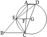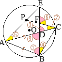 ⇒ 「円に内接する四辺形の向かい合う1組の角の和は180°になる」から ∠DAB+∠DCB=180° ∠ECB+∠DCB=180° から ∠DAB=∠ECBが言える