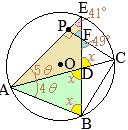 中心角が4:5⇒円周角が4:5とすればよい • ∠EPC=90°をどう使うか △PFEが直角三角形 ∠FEP=41°