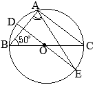 【問題2】右の図のように,点Oを中心,線分BCを直径とする円がある。この円周上に3点A, D, Eがあり,線分DEは点Oを通り,線分ACと平行である。 このとき,∠BAEの大きさを求めなさい。 (2024年度 佐賀県公立高校入試問題)
