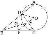 【問題18】右の図は,∠ACB=90°の直角三角形ABCである。線分ACを直径とする円の中心をOとし,円Oと辺ABとの交点をDとする。点Eは線分DC上にあって,OE⊥DCである。点FはOEの延長と辺BCとの交点である。また,点Gは線分BE上にあって,GF⊥BEである。 このとき,次の各問いに答えなさい。ただし,根号がつくときは,根号のついたままで答えること。 (1) △ABC∽△ODEであることを証明しなさい。 (2) AB=6 cm, AC=4 cmのとき, @ 線分DEの長さを求めなさい。 A 線分GFの長さを求めなさい。 (2024年度 熊本県公立高校入試問題)