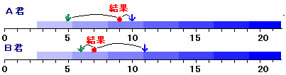 ここで,A君のうすい食塩水はB君のうすい食塩水よりもうすく,A君の濃い食塩水もB君の濃い食塩水よりもうすいとする. 混ぜてできた食塩水で,A君のものが濃くなるのはどのような場合か考える. |