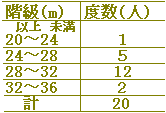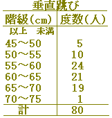 | 下の表は,生徒25人の反復横跳びの記録である。