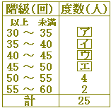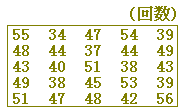 次の(1),(2)に答えなさい。 ![]() (2) 階級45回〜50回の階級値は H12山口県公立高校入試問題の引用 |