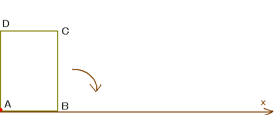 図のような長方形ABCDをX軸にそって、離れないように、すべらないようにしながら1回転させるとき、