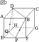 右図のようにAEの延長とBPの延長(DQの延長も)が交わる点をXとおくと,ABDXとEPQXは三角錐になり,それぞれの体積は\(\displaystyle \frac{4\times 4}{2}\times 8\div 3=\frac{64}{3}\) \(\displaystyle \frac{2\times 2}{2}\times 4\div 3=\frac{8}{3}\) 立体ABDEPQの体積は \(\displaystyle \frac{64}{3}-\frac{8}{3}=\frac{56}{3}\hspace{5px}(cm^3)\)
