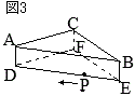 (3) この三角柱において,図4のように点Pが辺AB上にあり,CP+PDが最小となるときの,線分PFの長さを求めなさい。