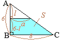 図2において,△ABCを右図のように見ると\(\displaystyle l:a=6:8 \) \(\displaystyle a=\frac{4}{3}l \) \(\displaystyle 12S=192 \) \(\displaystyle S=16\hspace{5px}(cm^2) \) 次に \(\displaystyle \frac{(\dfrac{4}{3}l+8)(6-l)}{2}=S \) \(\displaystyle (\frac{4}{3}l+8)(6-l)=2S=32 \) \(\displaystyle (4l+24)(6-l)=96 \) \(\displaystyle (l+6)(6-l)=24 \) \(\displaystyle 6^2-l^2=24 \) \(\displaystyle l^2=36-24=12 \) \(\displaystyle l=\sqrt{12}=2\sqrt{3} \) \(\displaystyle 6-l=6-2\sqrt{3}\hspace{5px}(cm) \) |