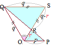 (図1の場合の証明)右図のように,点Sをとると,△RSQ∽△ROPとなるから