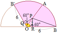 (3)BPとPQに分けて考える PからOBに引いた垂線の足をRとすると, OR=1, OP=2, RB=5, PR= BP= PQ= したがって,ひもの長さは, |