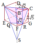 (2)右図のようにAQの延長とCRの延長とが交わる点をSとすると,点A, Q, S, R, Cは,△ASC上にある. したがって,求める切り口は台形AQRCになる. (等脚)台形の高さは, 面積は |