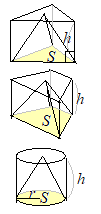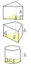 ※簡単なことのように見えますが,底面と高さとが直角になっている場合だけこの公式が使えます.例えば,右図においてSlはこの立体の体積ではありません.