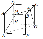 【問題3.2】右の図のように,1辺の長さが4cmの立方体があり,辺ABの中点をM,辺BCの中点をNとする。この立方体を4点M, E, G, Nを通る平面で2つの立体に切る。 このとき,次の(1)〜(5)の各問いに答えなさい。 (4) 2つの立体のうち,頂点Bを含む立体の体積を求めよ。 (1)(2)(3)(5) 略 (佐賀県2000年入試問題)