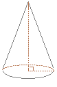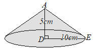 △ABCについて,三平方の定理を使って,斜辺ABの長さを求めると,AC2+BC2=AB2 62+82=AB2 36+64=AB2 AB=10 次に,AB=DEで,△ADEを1回転してできる立体は右図のような円錐になる. |