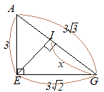底面は1辺の長さが3cmの正方形だから,三平方の定理を使って対角線の長さを求めるとさらに,断面の三角形AEGは右図のような直角三角形になるから,三平方の定理を使って斜辺AGを求めると 次に,△AEGと△EIGは相似図形であることを使って,IG=xの長さを求めると AG:IG=3:2となるから,四角すいIEFGHの高さはAE=3cmの したがって,求める体積は |