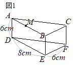 三角柱の高さはAD=6cm したがって,三角柱の体積は24×6=144(cm3)…(答)