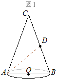 【問題4.2】右の図1は,線分ABを直径とする円Oを底面とし,線分ACを母線とする円すいであり,点Dは線分BCの中点である。 AB=6cm,AC=10cmのとき,次の問いに答えなさい。ただし,円周率はπとする。 (ア) この円すいの体積を求めなさい。 (イ)(ウ) 略 (神奈川県2015年入試問題)