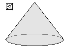 右図のような断面を考えると,△CAOは∠AOC=90°の直角三角形になるから,三平方の定理によりCA2=AO2+OC2 102=32+OC2 OC2=91(これが円すいの高さになる) だから,円すいの体積Vは |