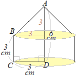 右の図の台形ABCDを,辺ADを軸として1回転させてできる立体の体積を求めなさい。(円周率はπを用いなさい。)