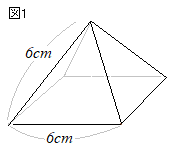 図1は,すべての辺の長さが6cmの正四角すいである。この正四角すいの体積を求めよ。