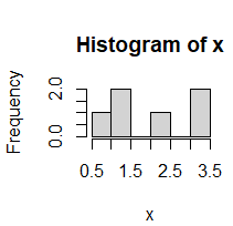 x<-c(0.5, 1.2, 1.3, 2.4, 3.1, 3.2)
