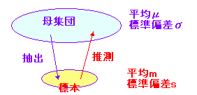 母平均 μ ( ミュー:ギリシャ文字 ) ,母標準偏差 σ ( シグマ:ギリシャ文字 ) の母集団から大きさ n の無作為標本を復元抽出するとき,